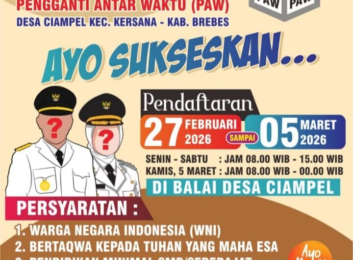 Gmpnews.id, Brebes – Lowongan jabatan Kepala Desa Pengganti Antar Waktu (PAW) di Desa Ciampel hingga kini masih...